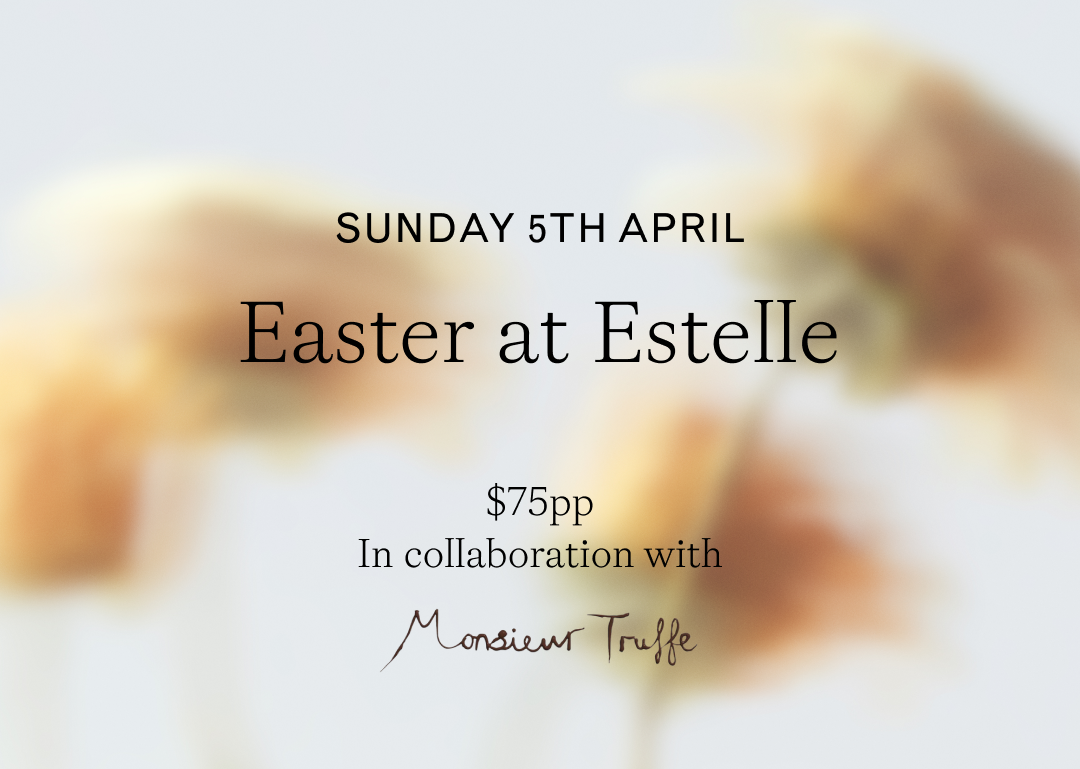 Join us on Sunday 5th April for our Easter Sunday Roast Lunch. It's the same relaxed, neighbourhood spirit you know and love, with a seasonal menu built for this special occasion. This year we've also partnered with Monsieur Truffe, Brunswick's beloved small-batch chocolate makers, so everyone goes home with a little something sweet from their handcrafted Easter collection. Order a glass of wine, settle in and enjoy your afternoon at Estelle.